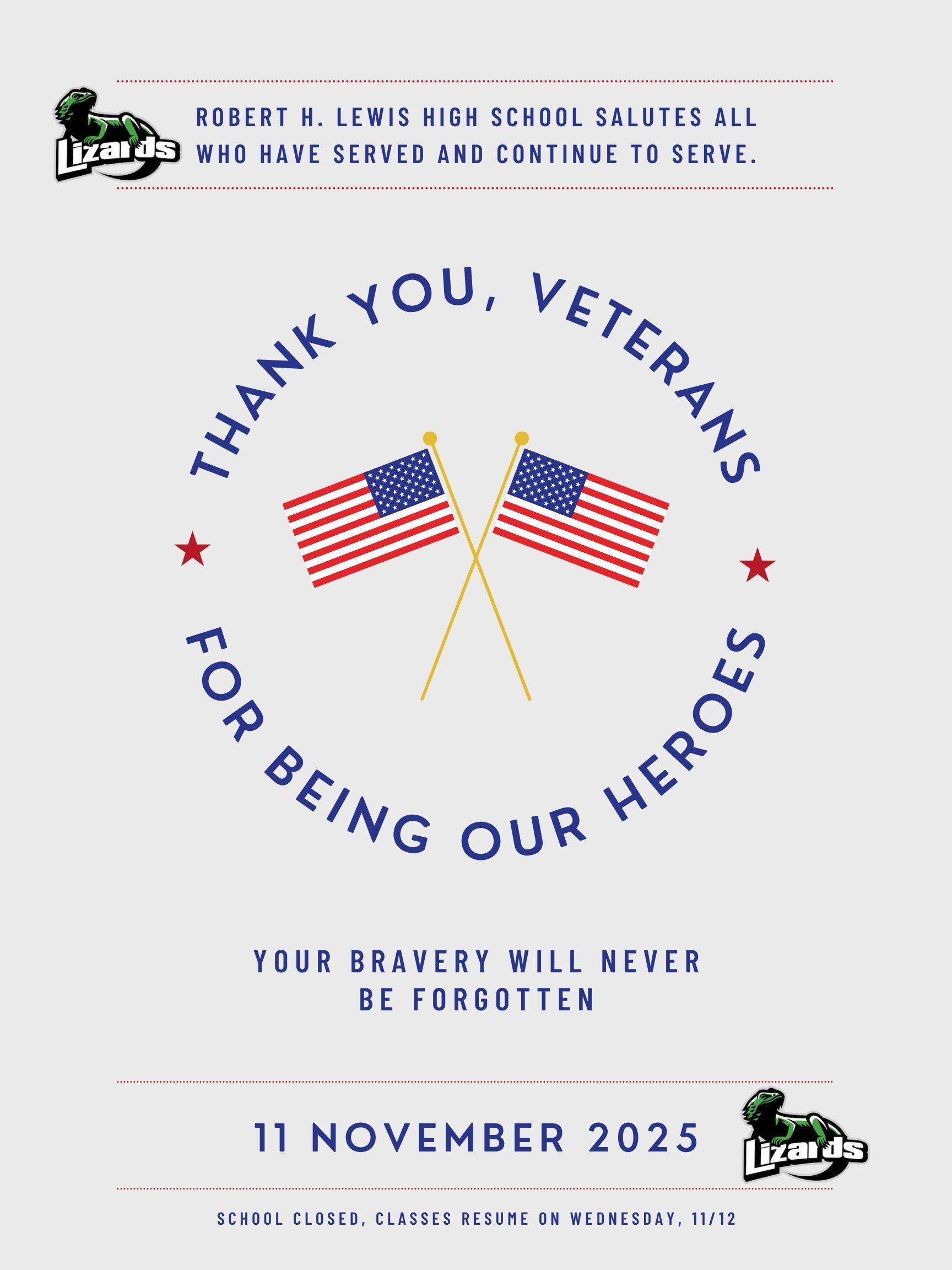 School will be closed on Tuesday, 11/11 in honor of Veteran's Day